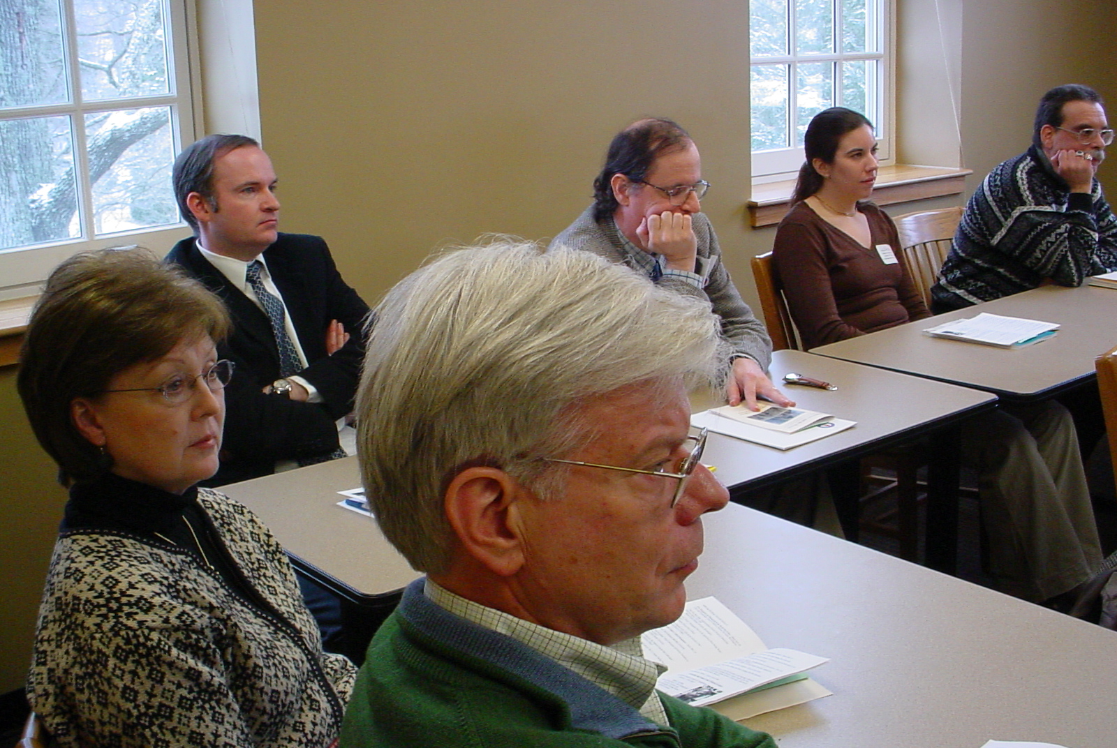 Hanover alumni Paul Murphy ('88), Dan Murphy ('81), Sarah Frye ('03) listen to papers on "Perception and Propaganda in the World War II Era."